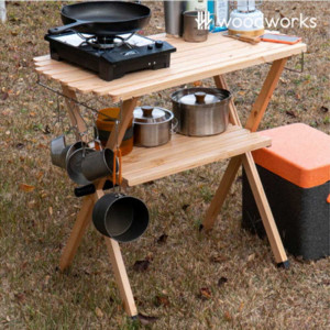 [우드웍스] 캠핑 우드 쉘프 스탠딩 테이블 WW-218150